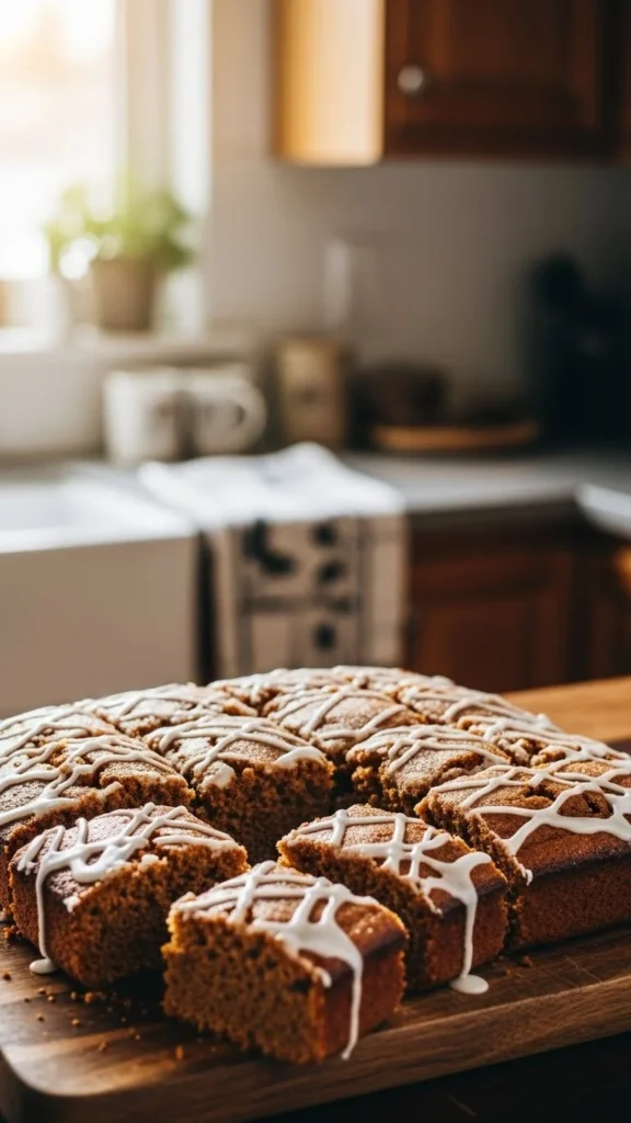 This cake skips layers and frosting drama. Molasses gives depth. Ginger and cinnamon give warmth. Mix by hand. Pour into a square pan. Bake until springy.