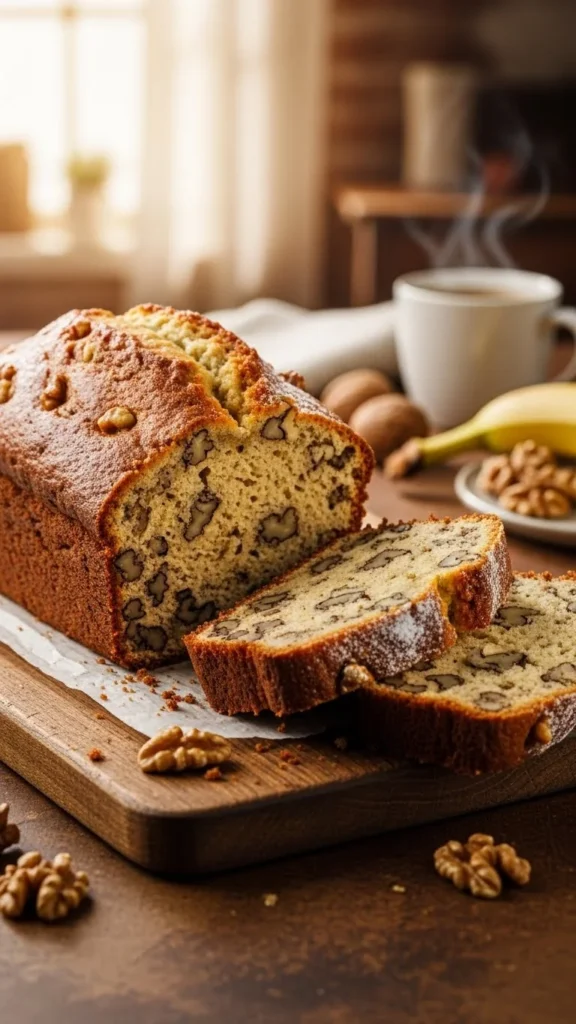 Overripe bananas shine here. Oil keeps the crumb soft. Walnuts add crunch.