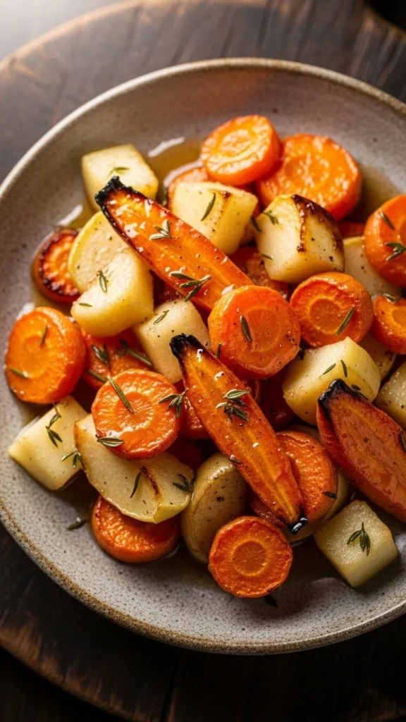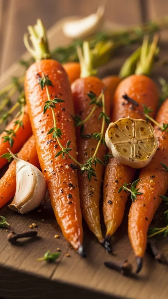 Garlic and herb roasted carrots are aromatic and savory. Toss carrots with olive oil, minced garlic, thyme, salt, and pepper. Roast until tender and lightly browned. Budget tip: dried thyme works if fresh isn’t available. Serve alongside roasted meats or mix into salads. The herbs elevate sweetness naturally while keeping preparation simple.