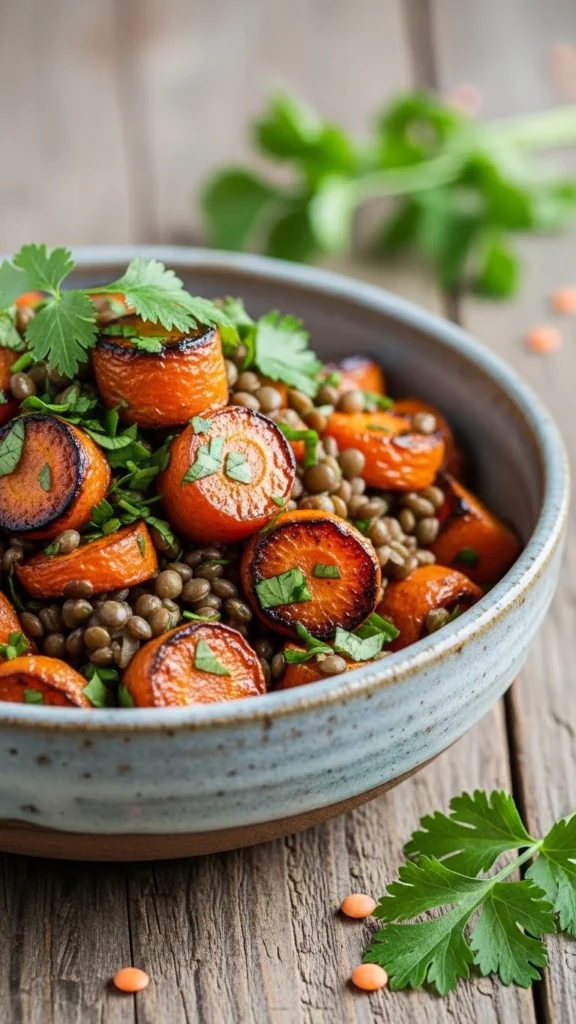 Carrot and lentil salad is filling and nutritious. Roast carrots, combine with cooked lentils, herbs, olive oil, and lemon. Budget-friendly: dried lentils are affordable. Serve for lunch or dinner. Sweet roasted carrots balance earthy lentils for a satisfying winter meal.