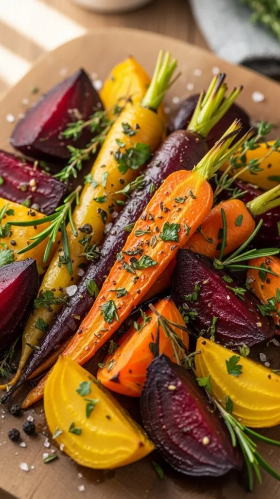 Carrot and beet salad is earthy and colorful. Roast carrots and beets with olive oil, salt, and pepper. Toss with fresh herbs. Budget-friendly: seasonal vegetables work best. Serve as a side or light meal. Carrots provide natural sweetness while beets add depth and color.