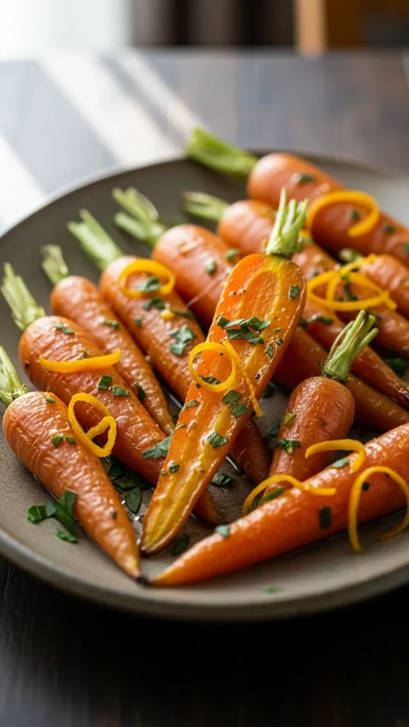 Roasted carrots with orange zest are bright and flavorful. Toss carrots with olive oil, orange zest, salt, and pepper. Roast until tender. Budget-friendly: use seasonal oranges. Serve as a side or in winter salads. Citrus zest adds a fresh aroma that complements the natural sweetness of roasted carrots.