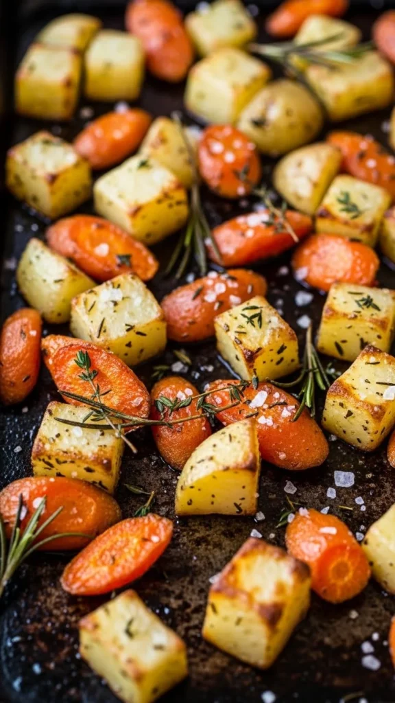 Carrot and potato roast is hearty and earthy. Toss chopped carrots and potatoes with olive oil, salt, pepper, and herbs. Roast until tender. Budget-friendly: seasonal vegetables are inexpensive. Serve as a side or add to grain bowls. Roasting enhances natural sweetness and adds cozy winter flavors.