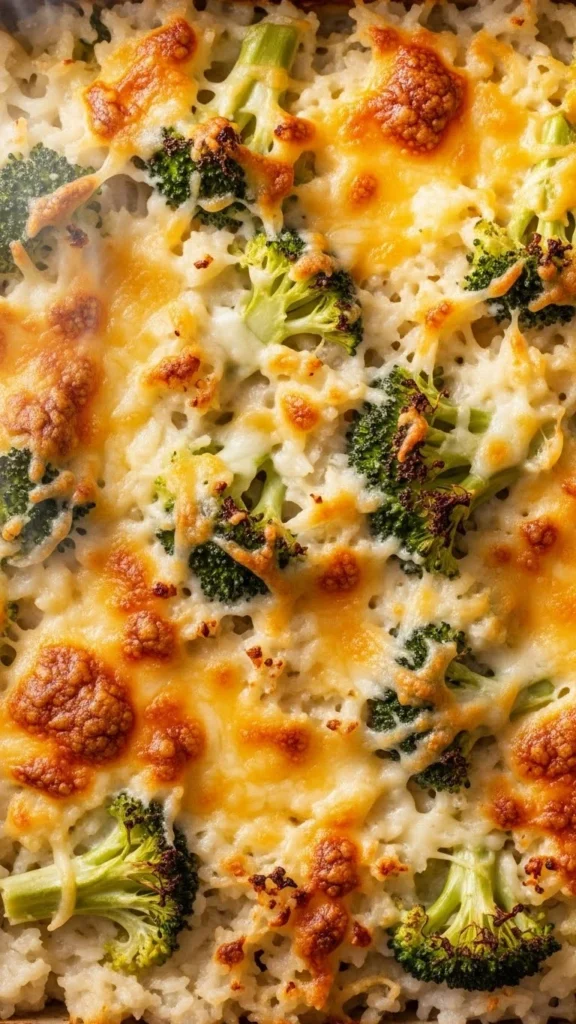 This bake combines rice, broccoli, and cheese into one warm dish. Mix cooked rice with a light cream base and fold in chopped broccoli. Bake until everything melts together. Frozen broccoli works perfectly and cuts cost. Add leftover chicken if you want more protein. This recipe is easy, filling, and practical for family dinners. It also reheats well for work lunches.