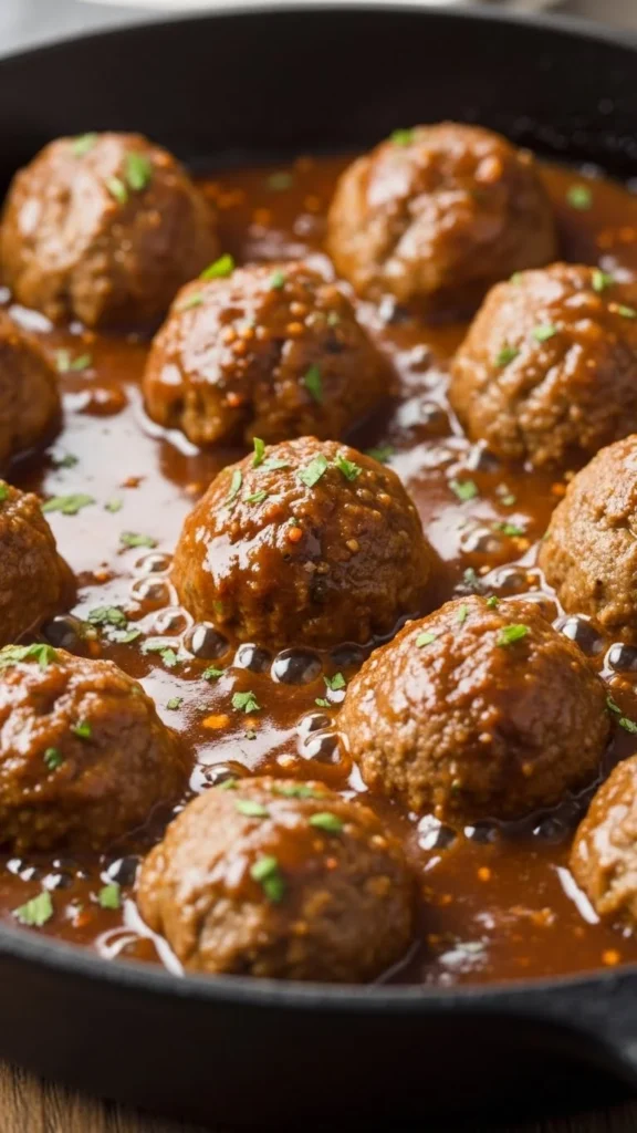 This dish brings together homemade or store-bought meatballs with a simple gravy. Cook the meatballs until warmed through, then add broth, butter, and seasoning to form a smooth sauce. Serve with mashed potatoes, noodles, or rice. Add mushrooms if you want extra depth. This meal is wallet-friendly, especially with bulk meatballs. It’s a steady winter dinner that feels hearty without complicated steps.