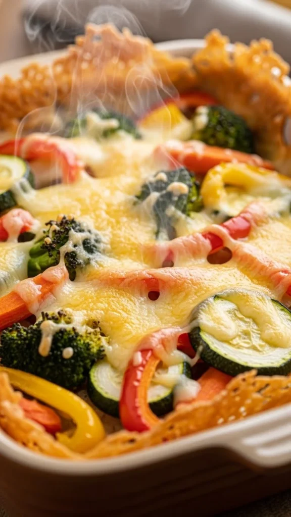 This dish turns basic vegetables into a warm dinner. Use broccoli, carrots, cauliflower, or whatever you have. Mix with a light cream sauce and top with cheese. Bake until the top browns. Add breadcrumbs if you want a crunchy layer. This recipe helps use leftover vegetables and works well for large families. Serve on its own or with rice. It’s filling without needing many ingredients.