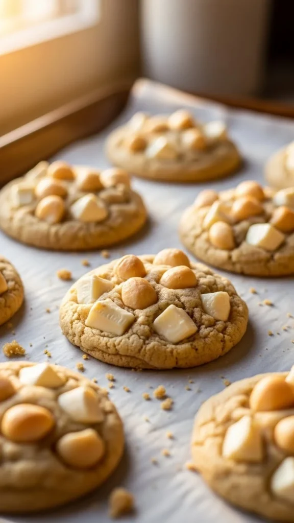 White chocolate macadamia cookies are rich and creamy. White chocolate chunks melt slightly in the oven, creating soft pockets of sweetness. Macadamia nuts add crunch and a nutty aroma. These cookies are easy to make at home with basic ingredients. Slightly underbake for chewy centers. For a cost-friendly tip, buy nuts in bulk or substitute with peanuts. Perfect with tea or coffee, these cookies fill the kitchen with a buttery, sweet scent that feels like winter comfort.