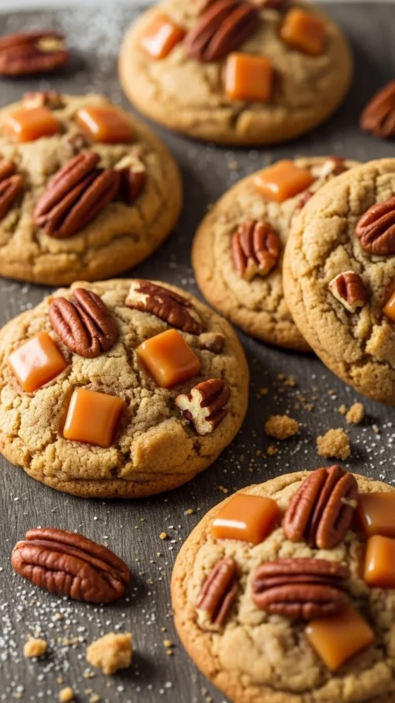 Caramel pecan cookies are rich and aromatic. Caramel chunks melt slightly while baking, creating sweet pockets inside. Pecans add crunch and a nutty fragrance. These cookies are affordable using basic dough ingredients and a few nuts. Bake until edges are golden but centers remain soft. The combination of buttery dough, caramel, and nuts fills the kitchen with a warm, inviting aroma. Perfect for sharing or gifting in a festive box.