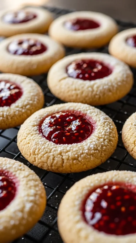 Raspberry thumbprint cookies are fruity and festive. Make a small indentation in each dough ball and fill with raspberry jam before baking. They are easy and inexpensive, using jam, flour, butter, and sugar. Baking releases a sweet, fruity aroma that blends with buttery dough scents. These cookies are soft, chewy, and visually appealing. Perfect for gifts or holiday platters, they offer a sweet surprise in every bite.