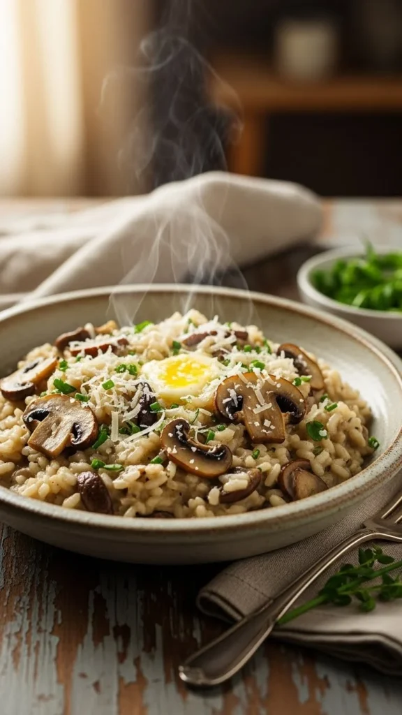 Mushroom risotto is creamy, earthy, and cozy. Sauté mushrooms and onions, toast rice, then slowly add broth until tender. Affordable ingredients like arborio rice and seasonal mushrooms keep costs reasonable. Finish with butter and cheese. Stirring while cooking creates a creamy texture. Serve as a main or side. Hearty, warm, and comforting, ideal for winter nights at home.