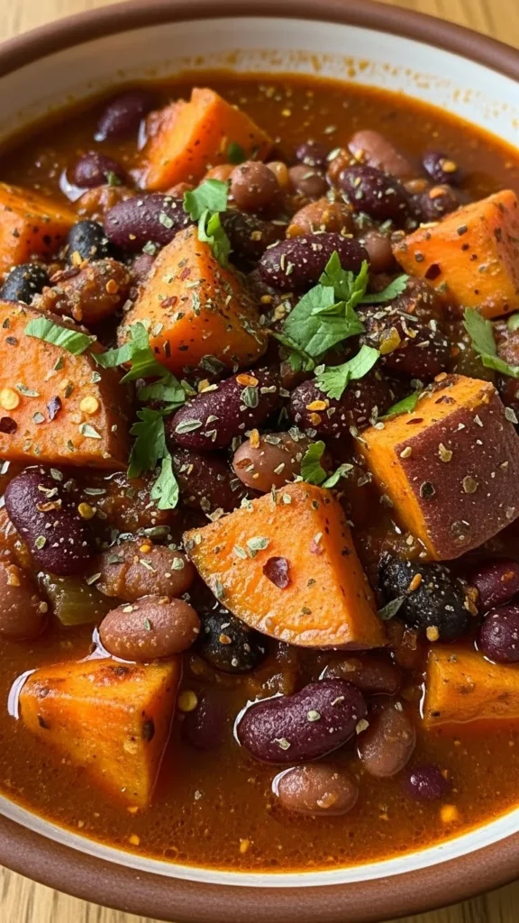 Sweet potato chili is hearty and budget-friendly. Sauté onions and peppers, add sweet potatoes, beans, tomatoes, and spices. Simmer until thick. Serve with rice or bread. Affordable pantry staples make this filling dish practical. Freeze leftovers for later. Slightly sweet and spicy, it warms the body and fills the stomach. A cozy winter meal with vibrant colors and flavors.