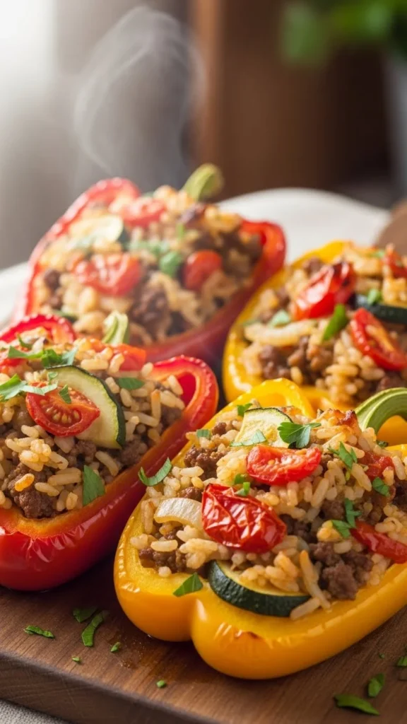 Stuffed peppers are visually appealing and hearty. Hollow peppers and fill with a mix of rice, vegetables, and ground meat. Bake until tender. Affordable ingredients make it practical for families. Portion for freezing if desired. Kid-friendly and comforting. Serve with sauce or cheese. Easy to prepare in batches and reheat for a filling winter meal. A satisfying dish that feels homemade and warm.