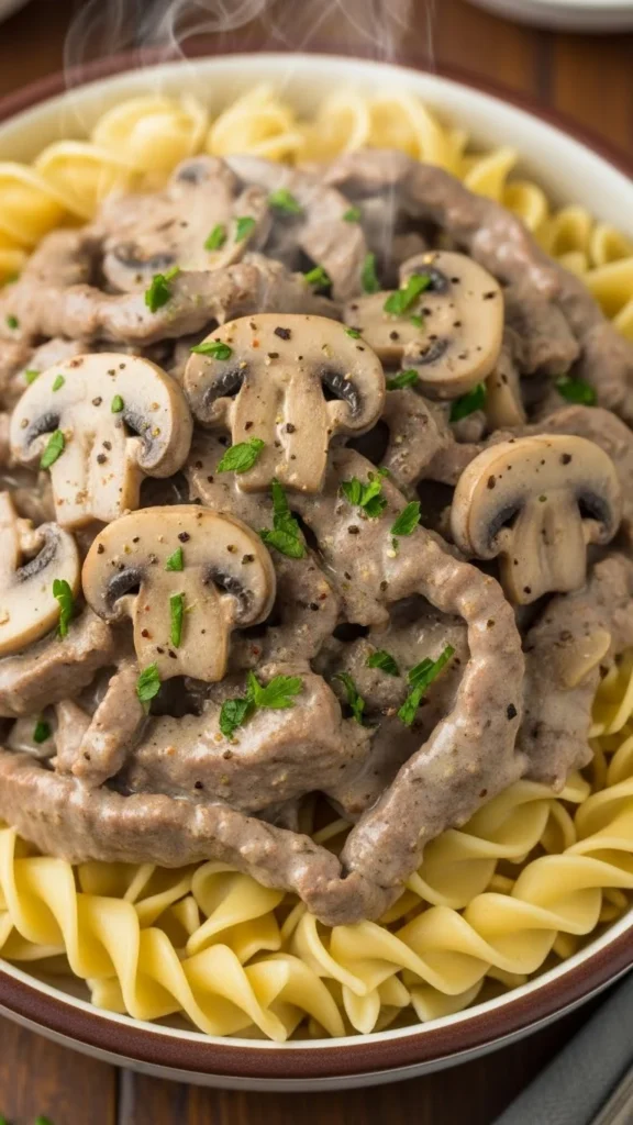 Beef stroganoff is rich, creamy, and warming. Sauté beef strips and mushrooms, add sour cream and broth. Serve over egg noodles. Affordable cuts of beef like sirloin tips or chuck work well. Freeze portions for convenience. Hearty, filling, and easy to prepare ahead. Perfect for a cozy winter dinner. Kids and adults enjoy the creamy texture and savory flavors.