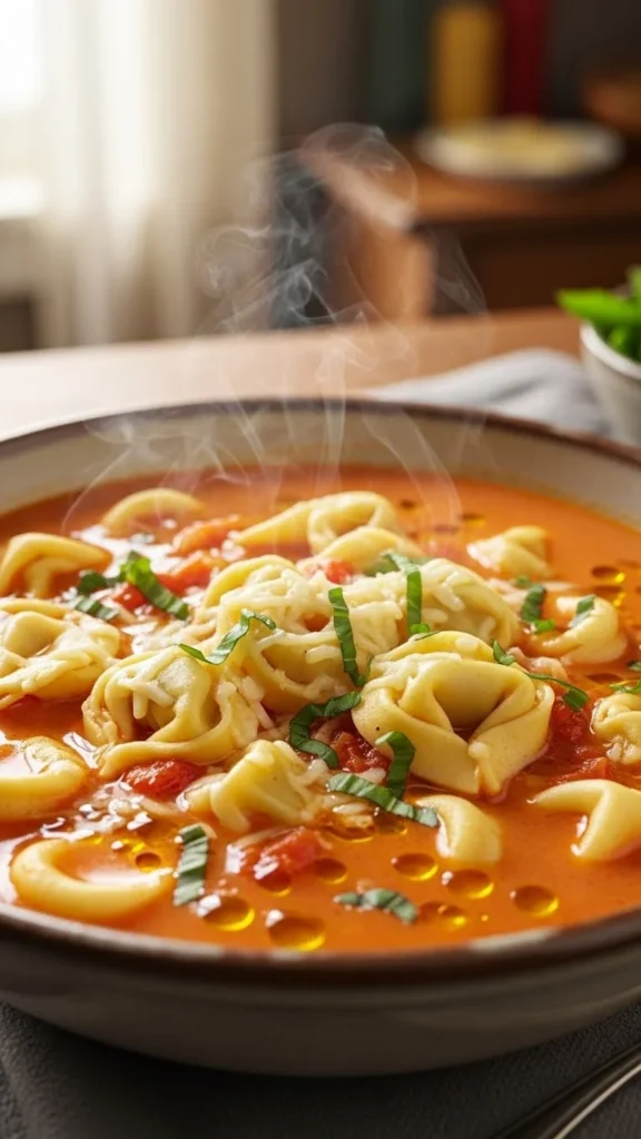 This soup tastes rich yet only takes minutes to prepare. Simmer tomatoes, garlic, and broth until warm. Add cheese-filled tortellini and cook until they soften. Stir in spinach and a touch of cream for added warmth. Serve with garlic bread or warm rolls. Store-brand tortellini works well and keeps the dish budget-friendly. Leftovers thicken slightly, making them even more satisfying. This dish is popular with kids and adults because it has soft textures and familiar flavours.