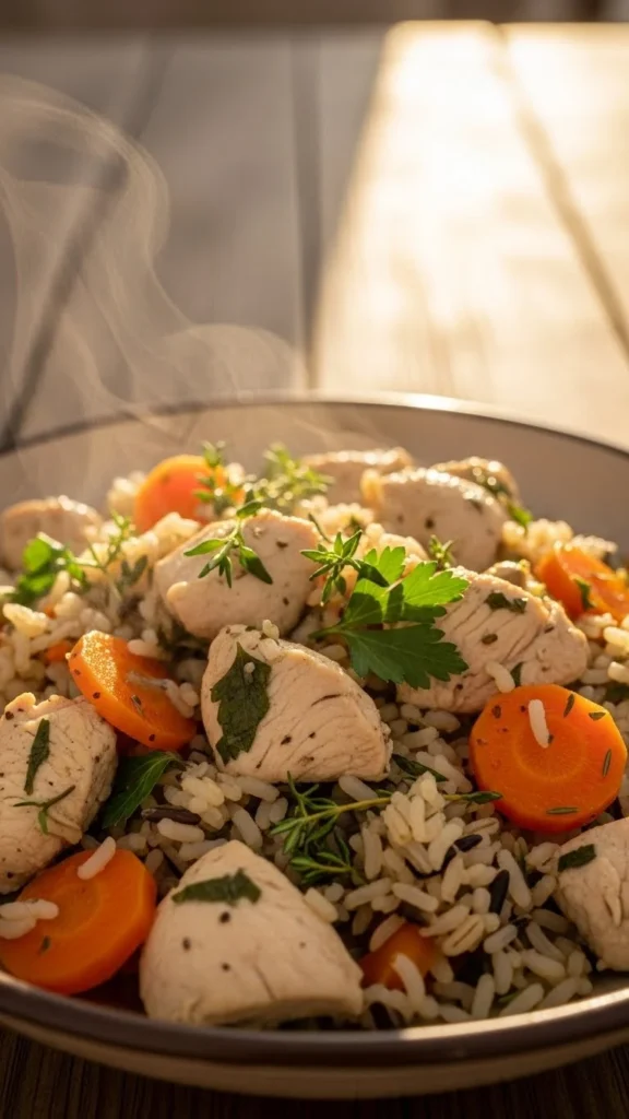Chicken and rice is a dependable winter dinner because it cooks itself. Add chicken thighs, rice, onions, carrots, garlic, and broth to a slow cooker. Let everything simmer until the rice absorbs the liquid and the chicken becomes tender enough to shred. Stir before serving to break everything apart. This recipe stretches well and uses simple, inexpensive ingredients. Add peas or spinach for extra colour. It also reheats smoothly, making it helpful for lunches later in the week.