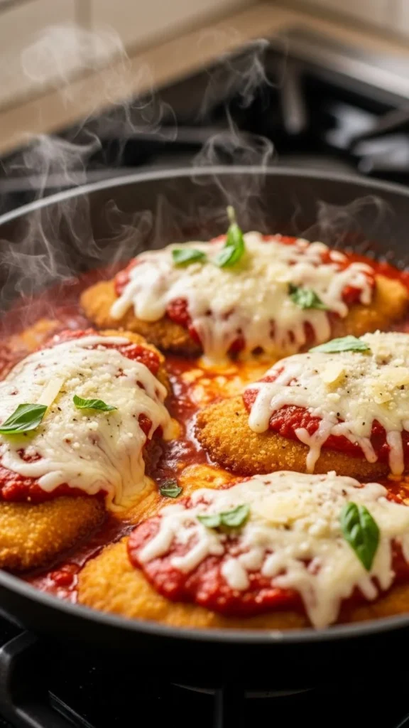 This skillet dinner offers classic comfort without requiring a long cook time. Lightly bread the chicken, sear it until golden, then cover with tomato sauce and cheese. Let it simmer until the chicken cooks through and the cheese melts. Serve over pasta or alongside roasted vegetables. This meal feels restaurant-level while still fitting weeknight schedules. Use store-brand sauce and cheese to keep the cost low. Add spinach or mushrooms to the skillet if your family enjoys extra vegetables. Leftovers reheat well and can be repurposed into sandwiches or wraps.