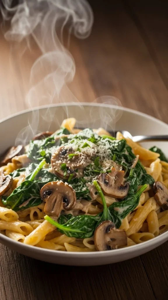 21. Creamy Spinach & Mushroom Pasta