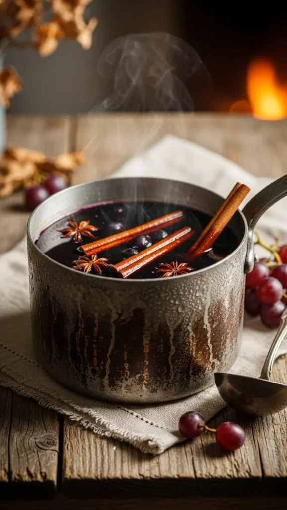 Warm grape juice with cinnamon and cloves.