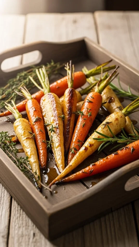 Toss carrots with honey, balsamic vinegar, and olive oil. Roast until caramelized. Budget-friendly: seasonal carrots are inexpensive. Add a sprinkle of fresh parsley for color. These sweet and tangy carrots complement any winter meal.