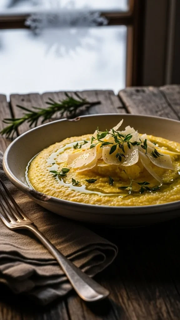 Cook polenta with butter, garlic, and Parmesan. Budget-friendly: polenta is inexpensive and filling. Serve alongside roasts or vegetables. This creamy dish adds comfort and flavor.