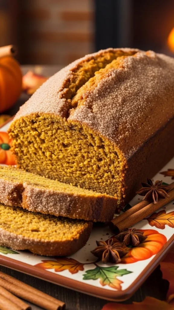 Mix pumpkin puree, spices, flour, and sugar. Bake until golden. Budget-friendly: homemade bread costs less than store-bought. This moist, aromatic bread adds warmth and color to any table.