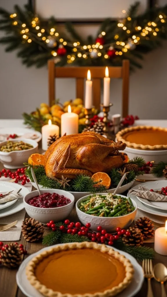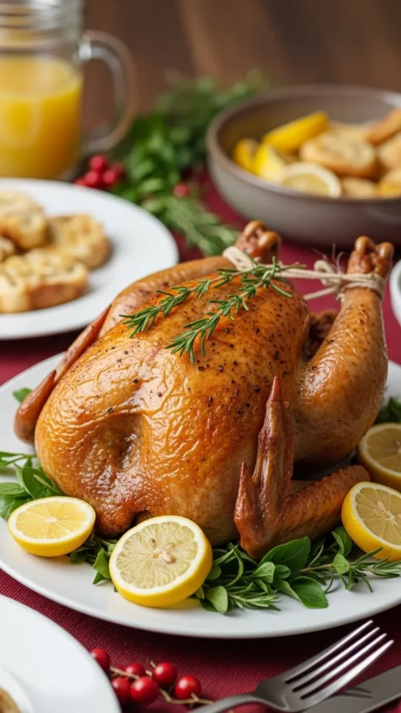 Rub turkey with lemon juice, olive oil, garlic, and fresh herbs. Roast until skin is golden. Budget-friendly: buy a smaller or frozen turkey. Serve with cranberry sauce and roasted vegetables. This classic winter centerpiece adds aroma and elegance.