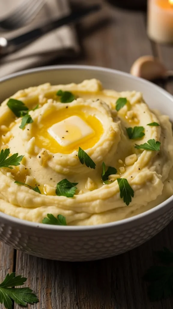 Boil potatoes and mash with garlic, butter, and cream. Budget-friendly: use seasonal potatoes. Sprinkle parsley for color. Serve as a side with roast meats. This comforting dish is a staple for festive meals.