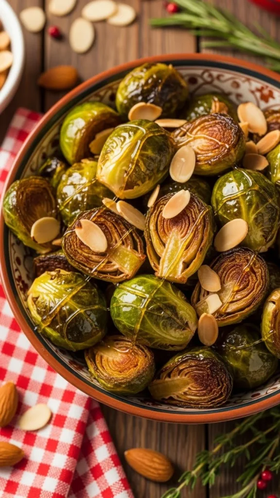 Toss sprouts with olive oil and honey, roast until crispy. Budget-friendly: frozen sprouts work too. Top with toasted almonds for texture. These sweet-savory sprouts are a perfect side dish.