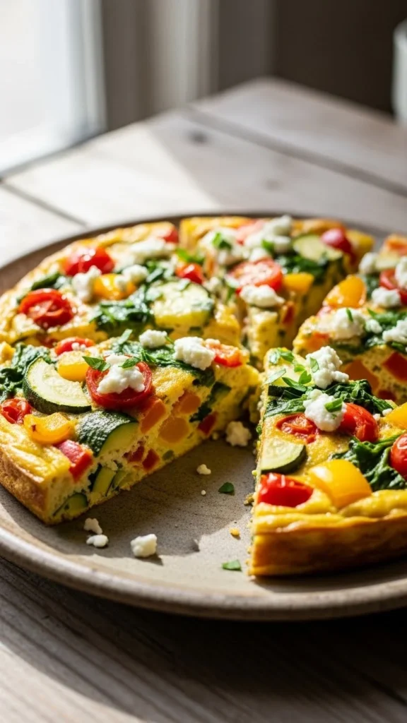 A frittata works for breakfast, lunch, or dinner. Beat eggs with salt and pepper, then add vegetables. Cook on the stove for a few minutes, then bake until set. Use whatever vegetables you already have to avoid waste. Add cheese if you want extra flavour. This recipe is gluten-free by nature and keeps well in the fridge. Great for meal prep.