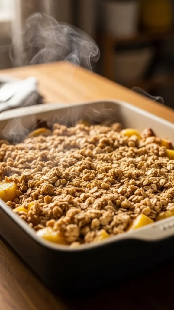 A gluten-free oat crisp works well for winter dessert. Slice apples, add cinnamon and a little sugar, then top with oats mixed with butter. Bake until golden. Use store-brand oats marked gluten-free. This dessert tastes great on its own or with yogurt. It keeps well in the fridge for a couple of days.