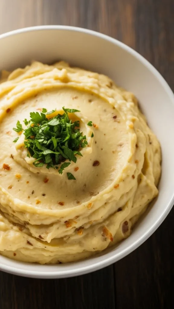 Roast garlic and blend into mashed potatoes with butter and cream. Budget-friendly: use simple pantry ingredients. This smooth, flavorful side pairs with any main course.