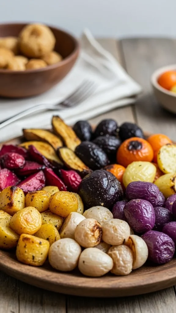Toss carrots, parsnips, and turnips with olive oil and herbs, roast. Budget-friendly: use seasonal vegetables. This vibrant dish adds color and nutrition to the holiday table.