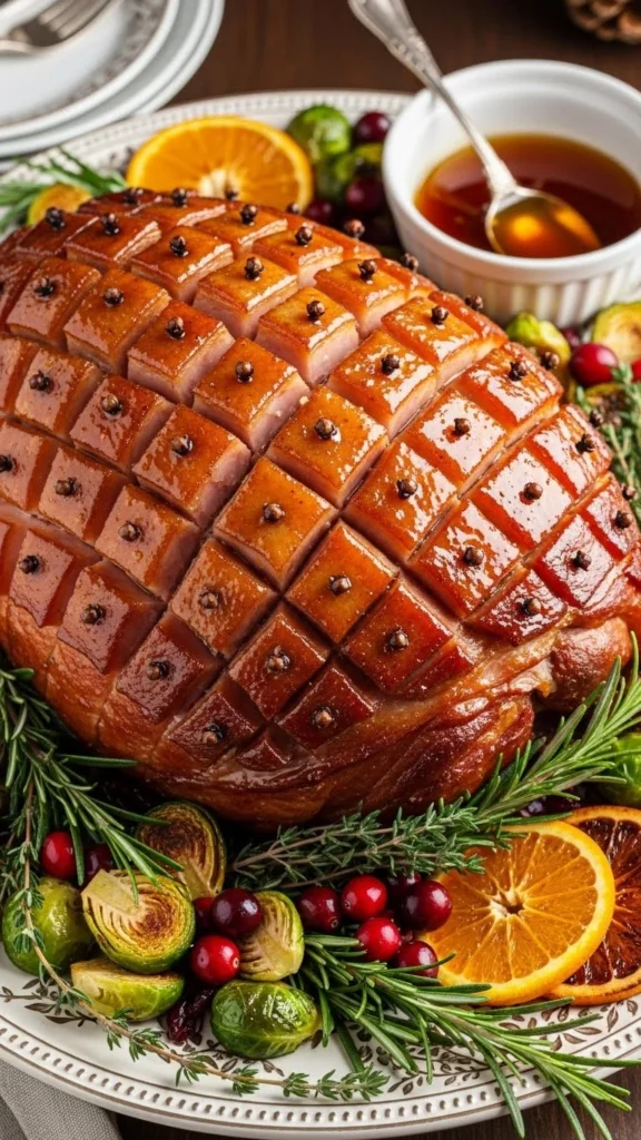 Score the ham and brush with a honey glaze before baking. Budget-friendly: purchase smaller hams and use leftover glaze for sandwiches. This sweet and savory dish is festive and perfect for holiday gatherings.