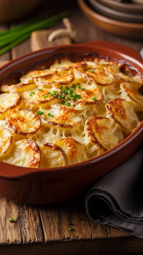 Thinly slice potatoes, layer with cream, cheese, and bake until golden. Budget-friendly: use local potatoes and shredded cheese. This rich, comforting dish pairs perfectly with roasted meats.