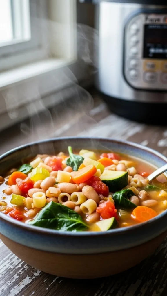 Minestrone adapts to what you have. Use beans, pasta, and vegetables. Add pasta after pressure cooking. This keeps texture right. Tomato base adds warmth. This soup works for lunch or dinner. Freeze without pasta if making ahead. Add pasta fresh later.