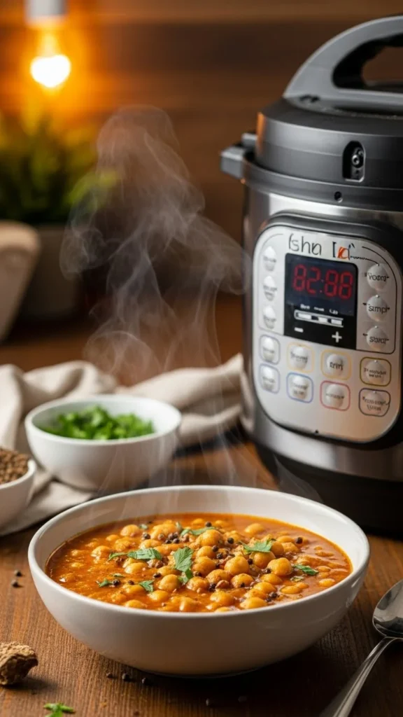 Canned chickpeas keep this meal quick. Rinse them well before cooking. Onion, garlic, and basic spices create flavor. Use canned tomatoes and a small amount of coconut milk if available. If coconut milk costs more, use plain milk or skip it. The curry still works. Serve with rice or flatbread. This dish suits meat-free days and stretches far. Leftovers store well for two days. Add frozen spinach at the end for color and nutrients. Chickpeas hold their shape in the Instant Pot, so texture stays pleasant. This recipe proves that plant-based meals can be filling and budget-friendly.