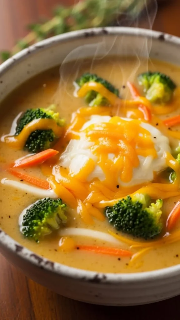 This soup feels comforting and simple. Steam the broccoli until soft, then simmer with cream and cheddar. Blend half the mixture to thicken without flour.
