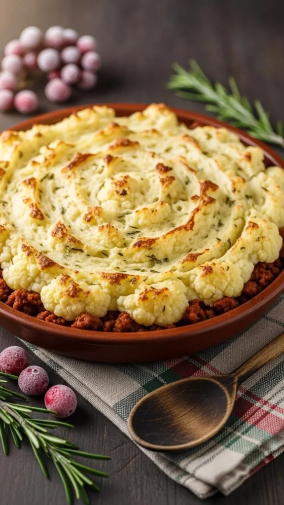 Replace mashed potatoes with mashed cauliflower for a low-carb version. Cook the mince with herbs and a splash of tomato paste. Spread cauliflower mash on top and bake until golden.