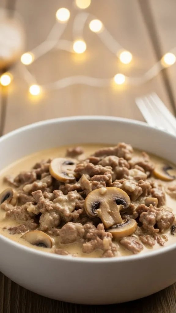 Use sliced beef, mushrooms, garlic, and cream to make a thick stroganoff without flour. Serve over cauliflower mash or zucchini noodles.