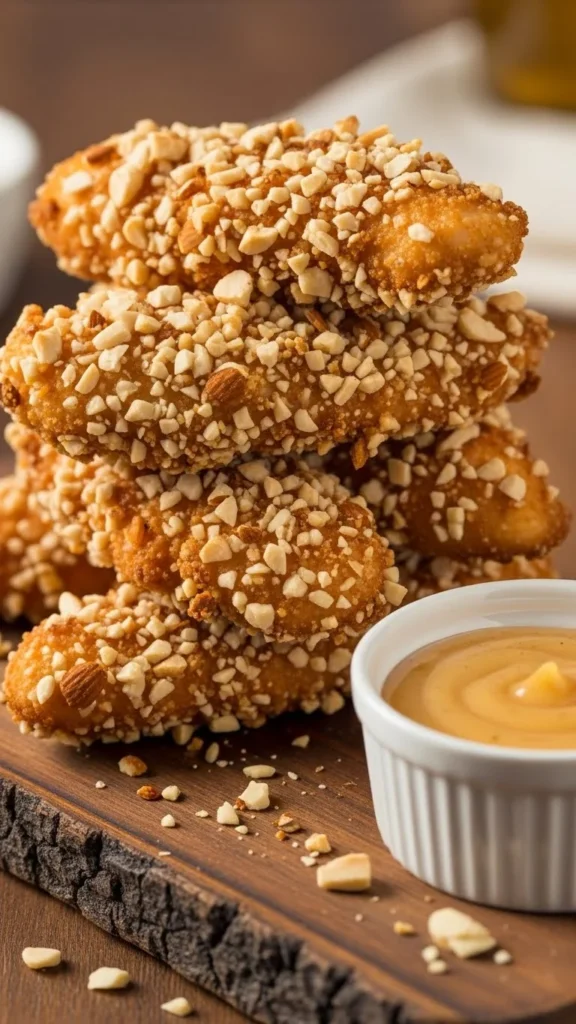 Crush almonds or use almond flour to coat chicken strips. Bake or air fry until crisp. They turn out crunchy without breadcrumbs.
