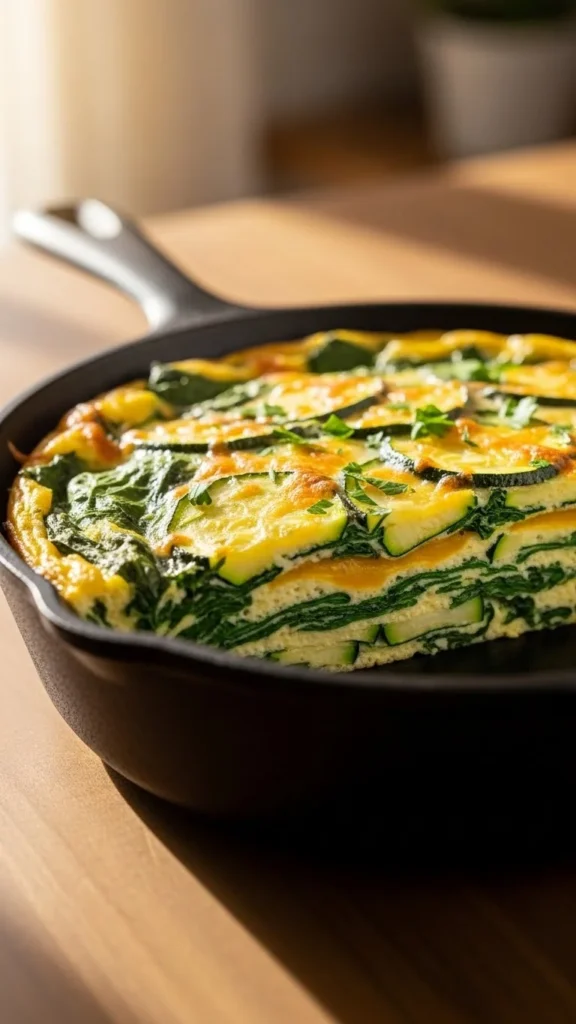 This recipe helps clear out your fridge without wasting ingredients. Use mushrooms, spinach, peppers, or whatever you have. Add herbs for flavour. Frittatas store well in the fridge for quick meals. They also travel easily if you pack lunches.