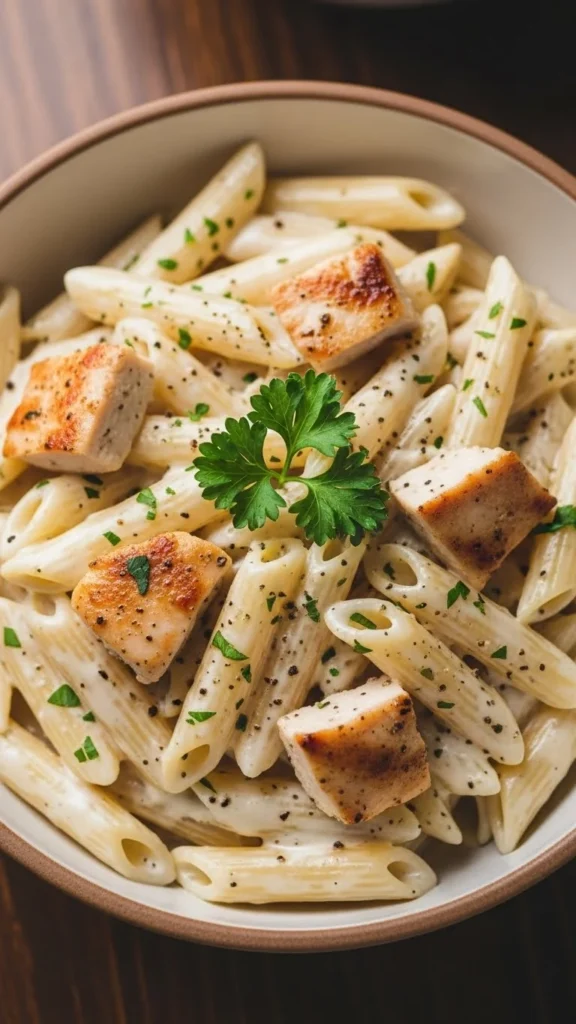 Alfredo pasta offers rich flavour with simple ingredients. Stir cream cheese or cream into a pan with butter and garlic. Add cooked pasta and chicken.