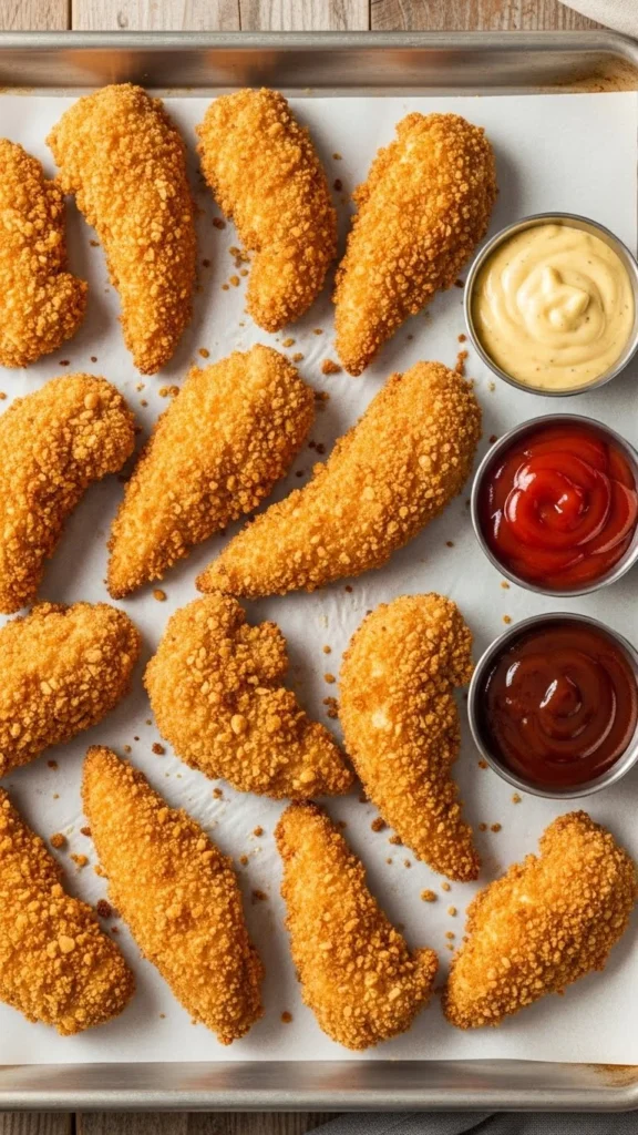 Freeze leftover tenders and reheat in the oven. This meal works well when time is tight or when you want something the whole family recognises.