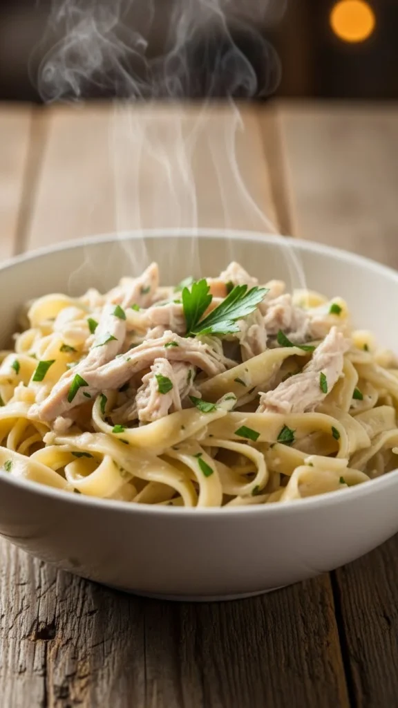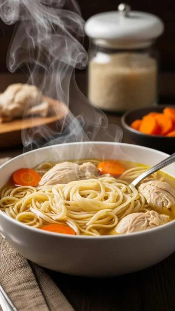 Cook chicken in broth first. Add noodles last. This keeps texture right. Adjust salt slowly. Serve hot on cold nights.