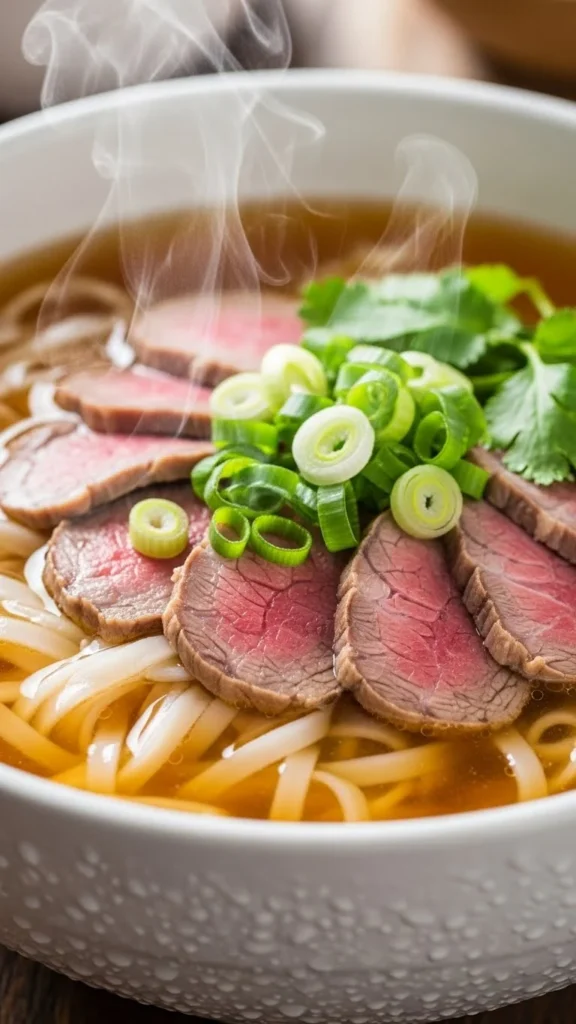 Use small beef portions. Let broth carry flavor. This bowl feels light but warming. Serve with bread.