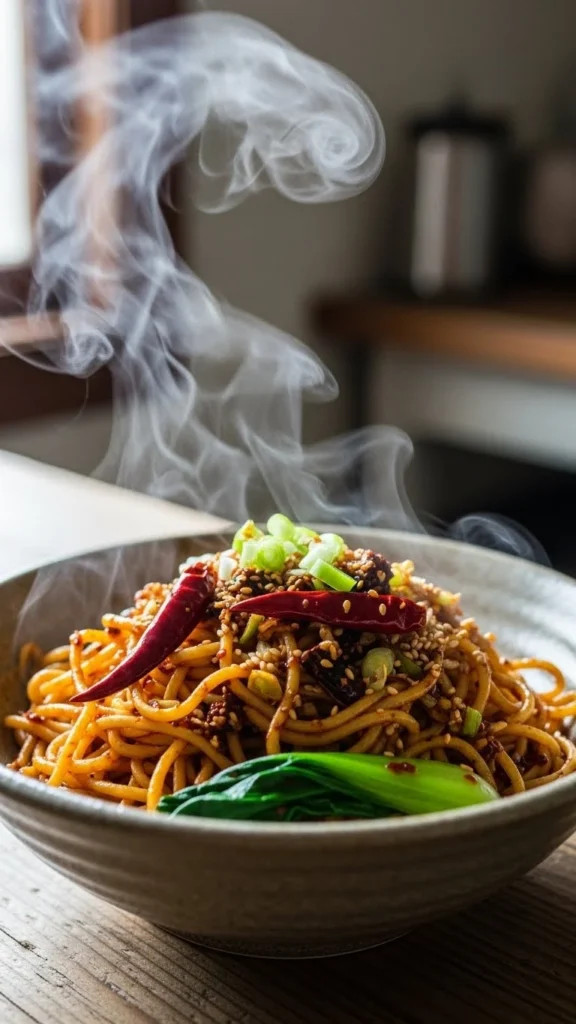 Chili oil brings warmth quickly. Use sparingly. Toss with noodles and garlic. Simple and bold.