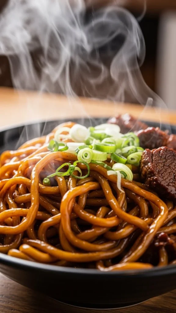 These noodles rely on pantry basics. Garlic, oil, and soy sauce do the work. A little sugar balances salt. Serve alone or with vegetables. This recipe stays budget-friendly and fast.