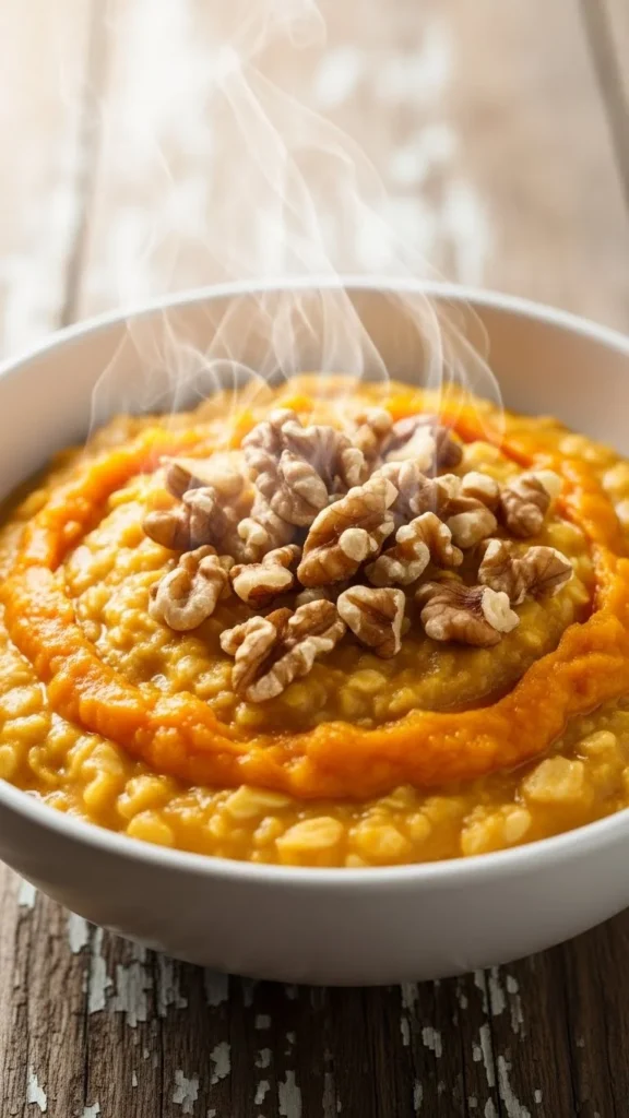 Spiced pumpkin walnut oatmeal is hearty and aromatic. Mix pumpkin puree, cinnamon, nutmeg, and chopped walnuts into oats. Sweeten lightly with honey or maple syrup. Using canned pumpkin keeps costs low. Baking or lightly toasting walnuts enhances flavor. This oatmeal is filling and warming for winter mornings. Serve with extra nuts or a drizzle of maple syrup. Simple, practical, and satisfying.