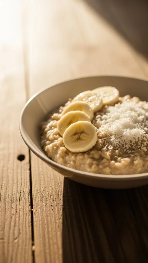 Banana coconut oatmeal is creamy, sweet, and warming. Fold sliced bananas and shredded coconut into cooked oats. Sweeten lightly with honey or maple syrup. Coconut adds texture and flavor. Bananas are budget-friendly. This oatmeal is filling and keeps you warm on winter mornings. Optional toppings include nuts or cinnamon. Simple, practical, and satisfying for busy mornings.