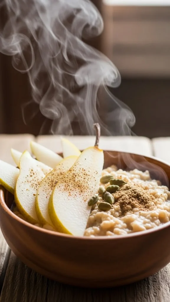 Pear ginger oatmeal is subtle, aromatic, and warming. Slice pears and fold them into oats cooked with a hint of ginger. Sweeten with honey or brown sugar. Fresh or canned pears work and keep costs low. The warm ginger flavor adds a wintery touch. Optional toppings include chopped nuts or seeds. This oatmeal is practical, filling, and perfect for a soothing morning meal. Quick to make and full of comforting flavors.